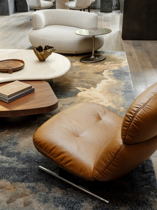 Со своей чистотой линий, идеальной гармонией прямоугольника и круга, мебель коллекции Connery уверенно транслирует дух американского дизайна mid-century. Тем временем архитектурный почерк ведущего дизайнера Minotti Родольфо Дордони акцентирует силу геометрии, которая в сочетании с элегантной подборкой мягких отделочных материалов создает еще более притягательные контрасты.